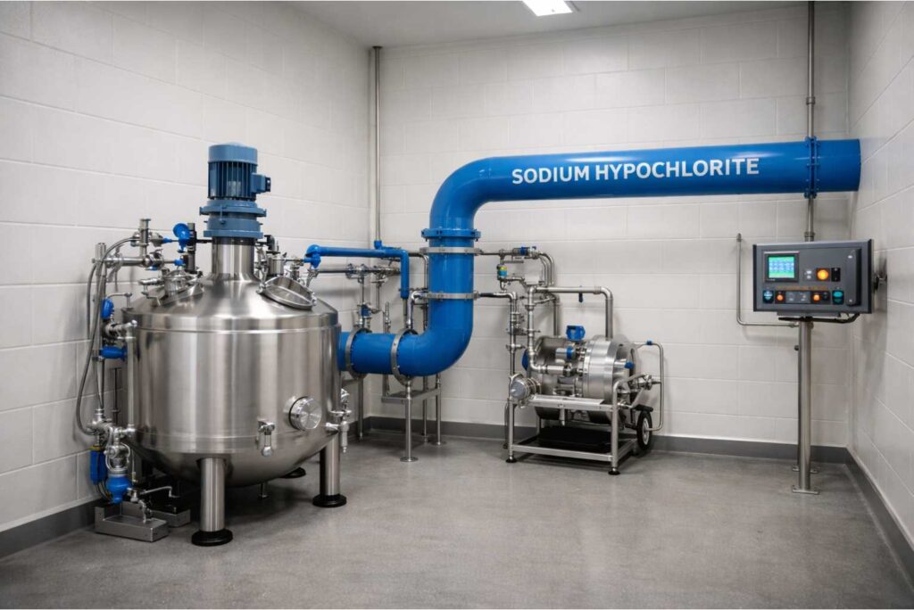 Sodium hypochlorite is widely used for disinfection, bleaching, and sanitation processes across industries.